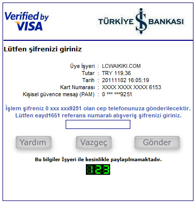 Bu sayfada alışverişinize ait bilgilerle birlikte "kişisel güvenlik mesajınız (PAM)" ekranda gözükecektir. Bu mesaj sadece siz ve kartınızı size gönderen banka tarafından bilinmektedir. Mesajın ekranda gözüküyor olması kartı tarafınıza gönderen bankanın web sitesine güvenli olarak bağlandığınızı göstermektedir.